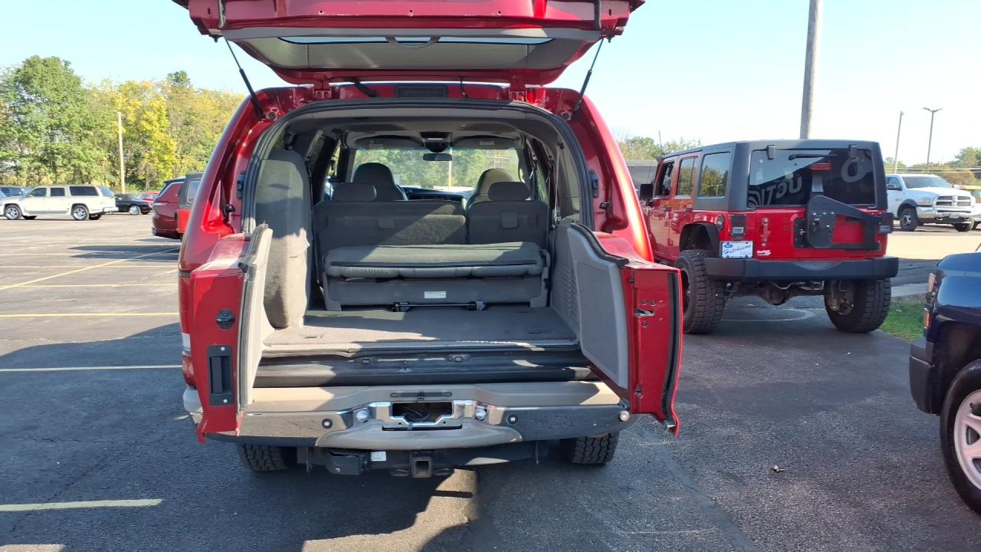 (4) 16" x 7.0" 5-hole styled aluminum wheels, (5) LT265/75R16D all-season SBR OWL tires, (5) auxiliary pwr points, 1st/2nd color-keyed carpeted floor mats, 4-Wheel Anti-Lock Braking System, 4-speed electronically-controlled automatic transmission w/OD, 6.8L (415) SOHC SEFI V10 engine, Black pwr heated mirrors, Color-keyed sun visors-inc: illuminated vanity mirrors, secondary sun blade, Electrochromatic Rear View Mirror, Four Wheel Drive, Full Size Spare Tire, Illuminated beige running boards, Leather 2nd row reclining 60/40 split bench seat-inc: dual tip/slide feature center armrests, cup holders, Leather 3rd row 3-passenger removable fold-flat bench seat w/rollers, Leather front captains chairs-inc: 6-way pwr driver seat, Lights-inc: underhood, glove box, front dome/map, front door courtesy, overhead rear cargo, 2nd/3rd row map lights, Manual front/rear air conditioning, Molded door trim panel-inc: soft armrest, upper woodgrain insert, dual map pockets, lower carpet, Overhead console-inc: trip computer, pwr rear quarter window controls, Passive anti-theft system, Premium electronic AM/FM stereo w/compact disc/cassette-inc: 80-watt amp, Pwr windows w/driver one-touch-down, Rear Seat Audio Controls, Rear window intermittent wiper w/washer, Remote keyless entry-inc: 2-transmitters, door keypad